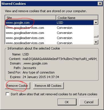 cookies). Select each one in turn, and then hit ‘Remove Cookie’. You should