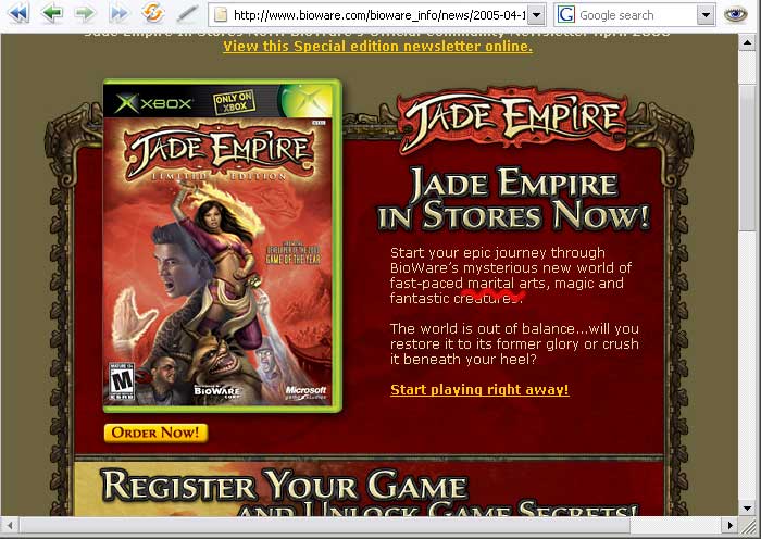 Today I got a BioWare e-newsletter. The new game, Jade Empire, has shipped — but it’s not the kind of game I thought it was going to be: